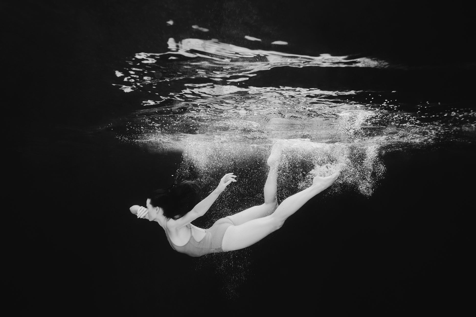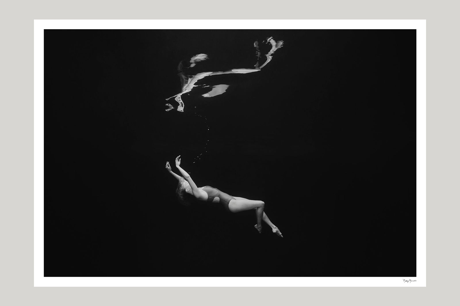 To clear is to separate, to shake free, to no longer hold on. The bubbles rise like a trail of what has been shed, reminders of how simplicity comes only after release. This image was inspired by Lillian Bassman’s iconic black and white 1950’s photograph of a woman diving underwater.