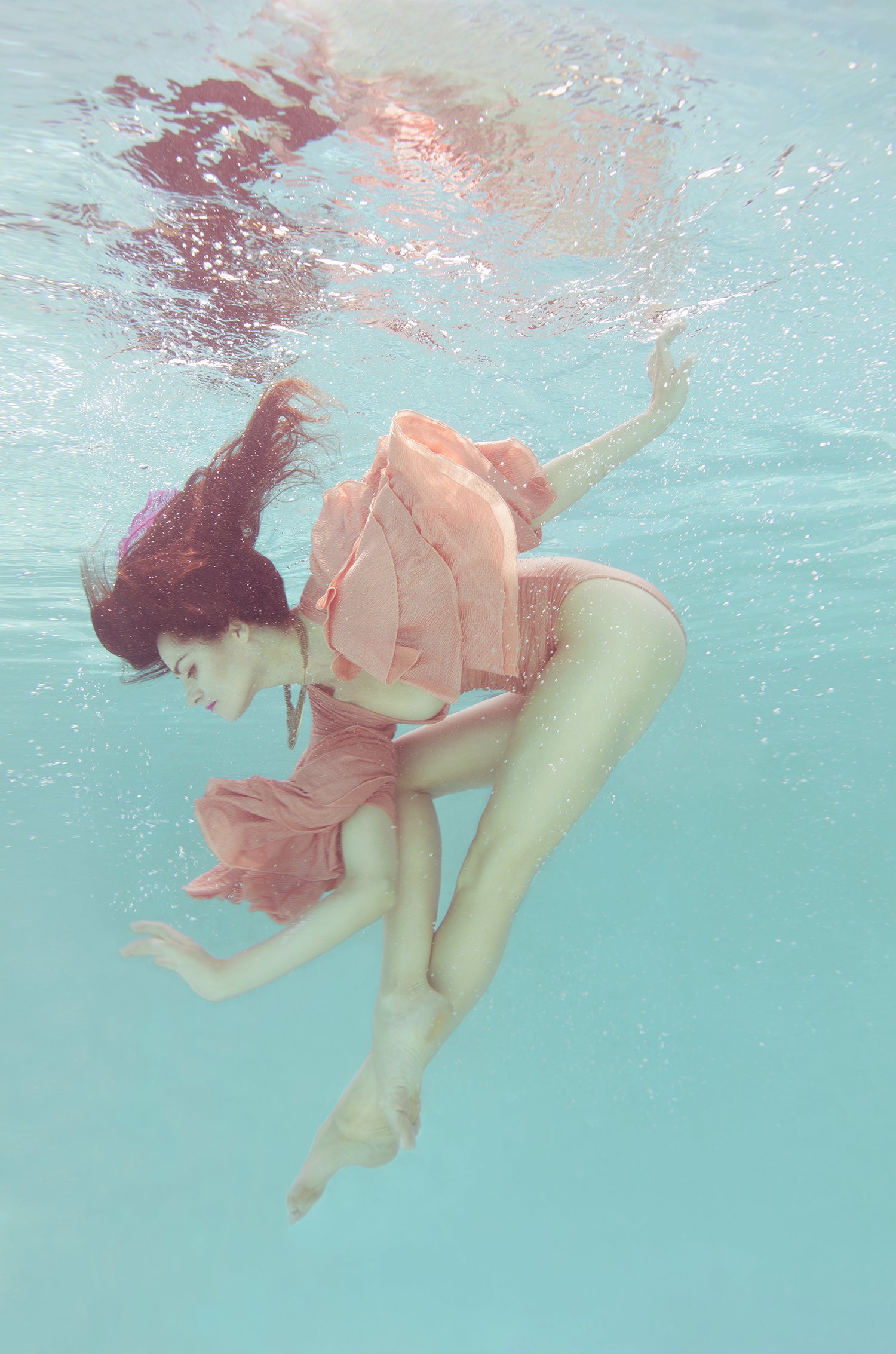 Exploration is part of a series titled Phoenix Reborn. In this series, a woman is submerged in water and finds her strength and transforms into a phoenix. This image is the moment where she begins to grow wings and morph into her phoenix form.